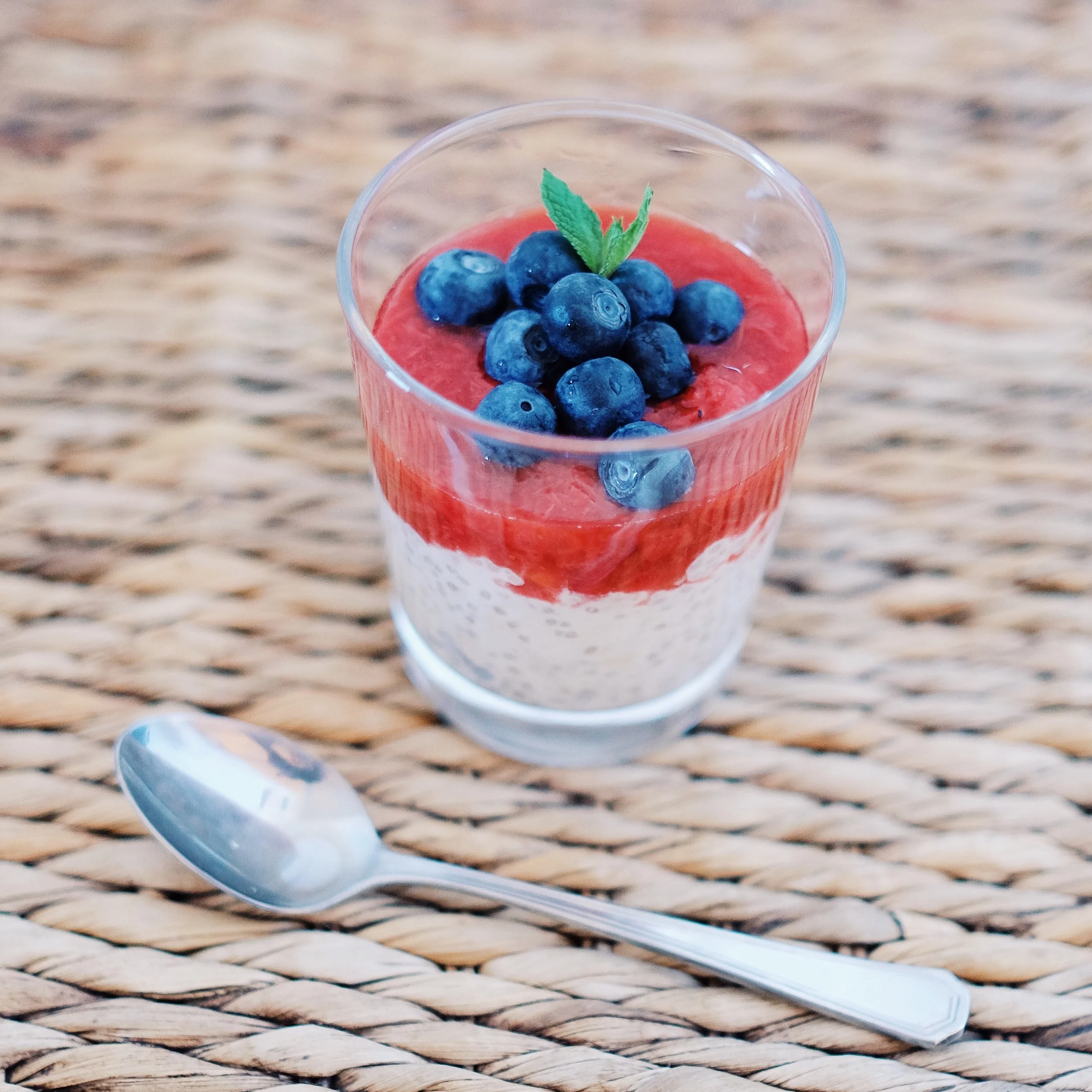 - Get creative by alternately layering the compote with the pudding and adding blueberries, bananas or hemp seeds on top.